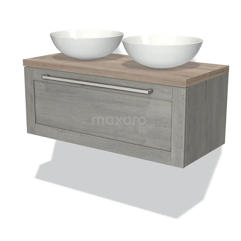 Modulo Plato Vanity units for countertop basin | 100 cm Grey oak Frame front Oak worktop 1 drawer