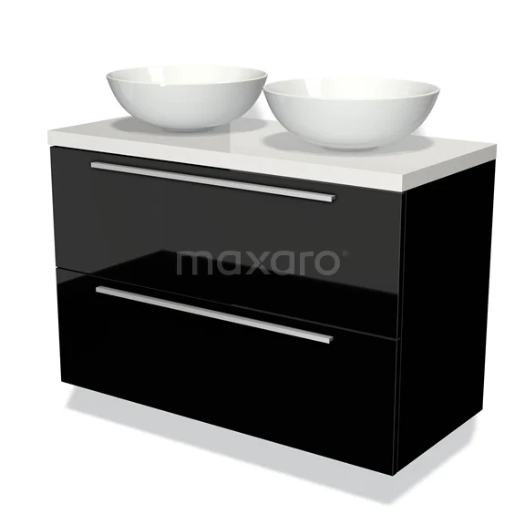 Modulo Plato Vanity units for countertop basin | 100 cm High-gloss black Flat front High-gloss white worktop 2 Stacked drawers