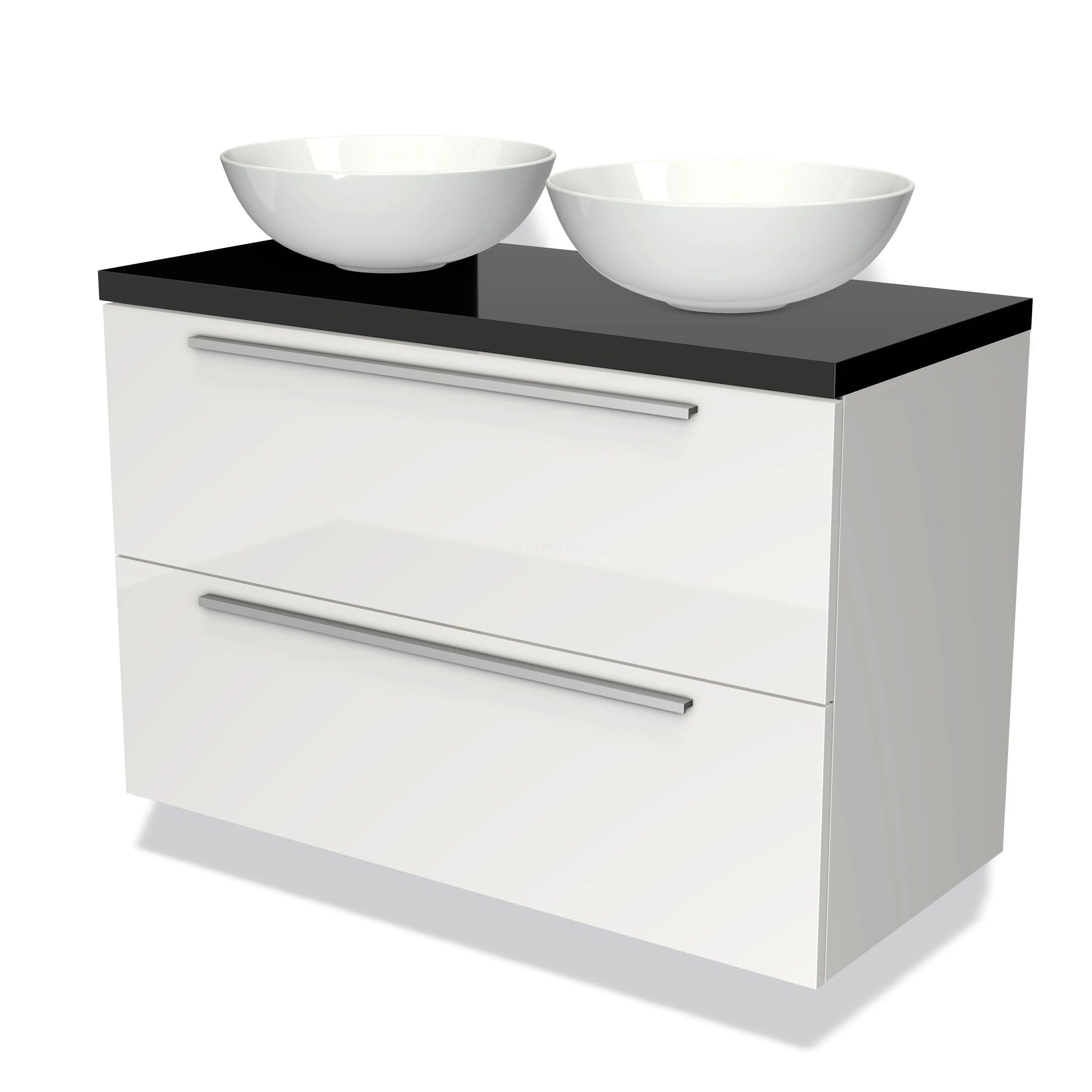 Modulo Plato Vanity units for countertop basin | 100 cm High-gloss white Flat front High-gloss black worktop 2 Stacked drawers