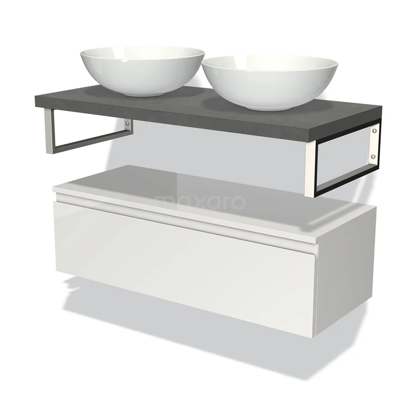 Modulo Plato Vanity units for countertop basin | 100 cm High-gloss white Handle-less front Dark grey concrete worktop Low floating