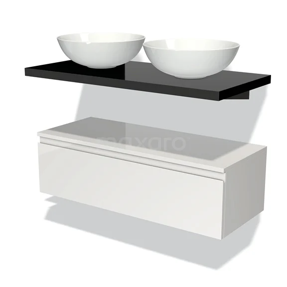 Modulo Plato Vanity units for countertop basin | 100 cm High-gloss white Handle-less front High-gloss black worktop Low floating