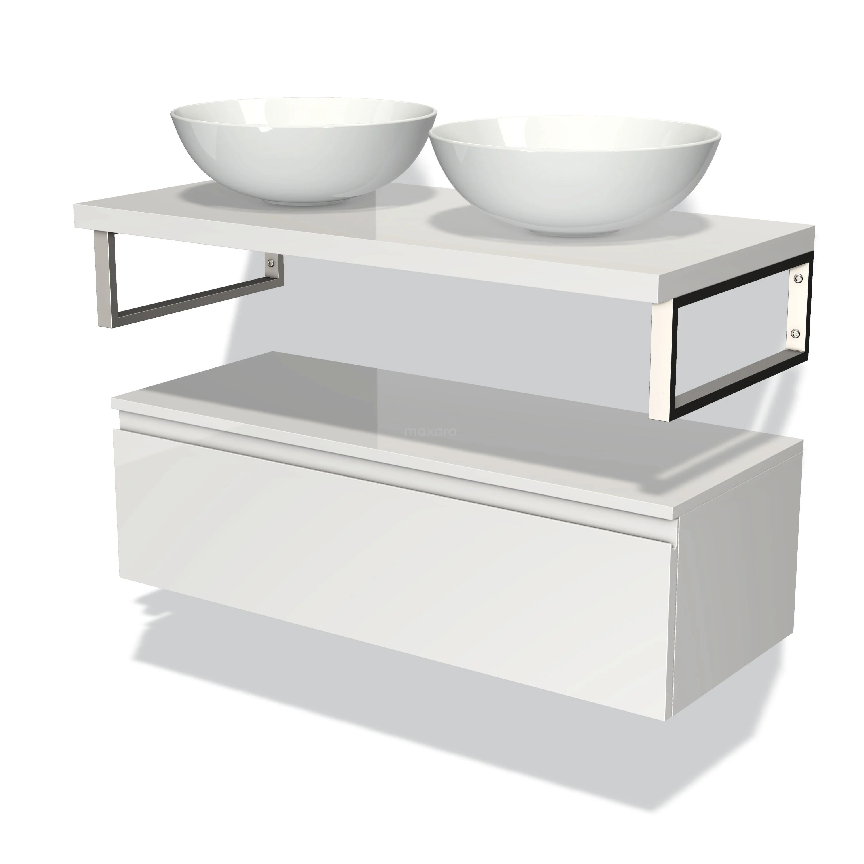 Modulo Plato Vanity units for countertop basin | 100 cm High-gloss white Handle-less front High-gloss white worktop Low floating