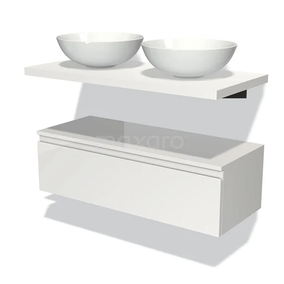 Modulo Plato Vanity units for countertop basin | 100 cm High-gloss white Handle-less front Matte white worktop Low floating