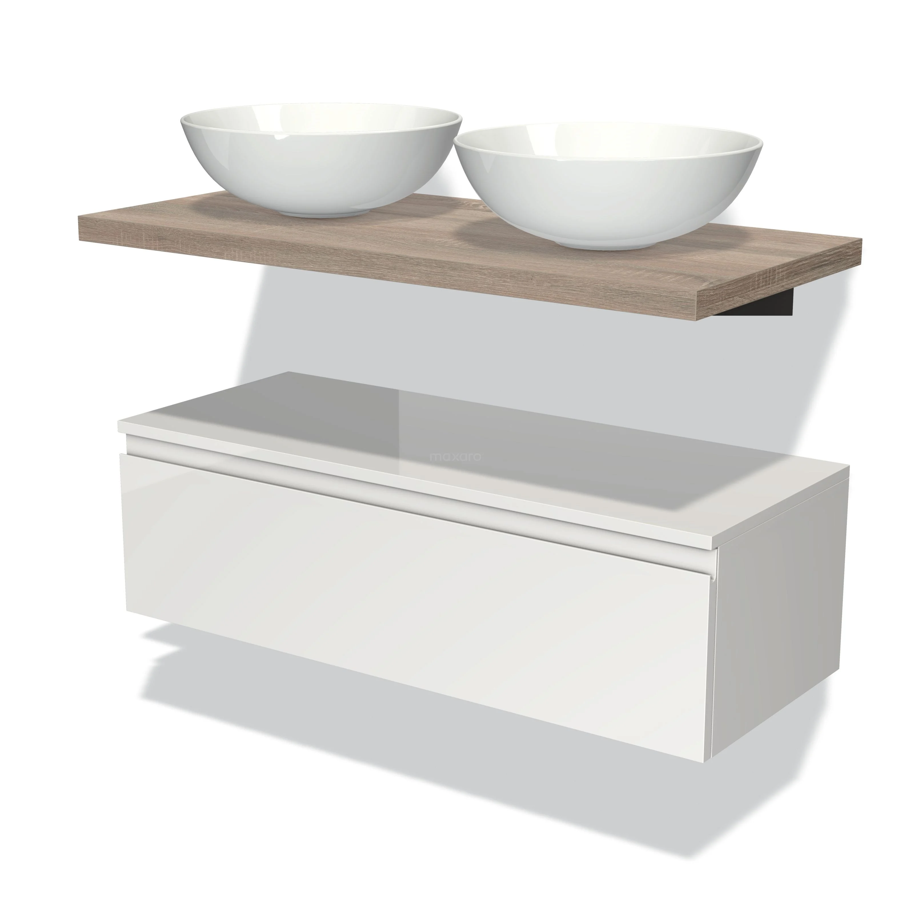 Modulo Plato Vanity units for countertop basin | 100 cm High-gloss white Handle-less front Oak worktop Low floating