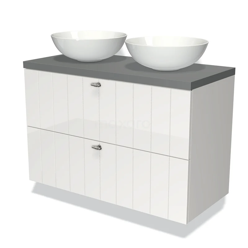 Modulo Plato Vanity units for countertop basin | 100 cm High-gloss white Slat front Mid grey worktop 2 Stacked drawers