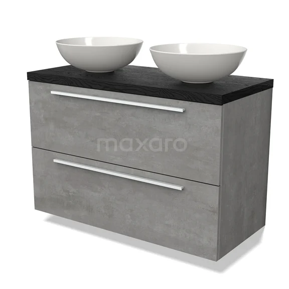 Modulo Plato Vanity units for countertop basin | 100 cm Light grey concrete Flat front Black oak worktop 2 Stacked drawers