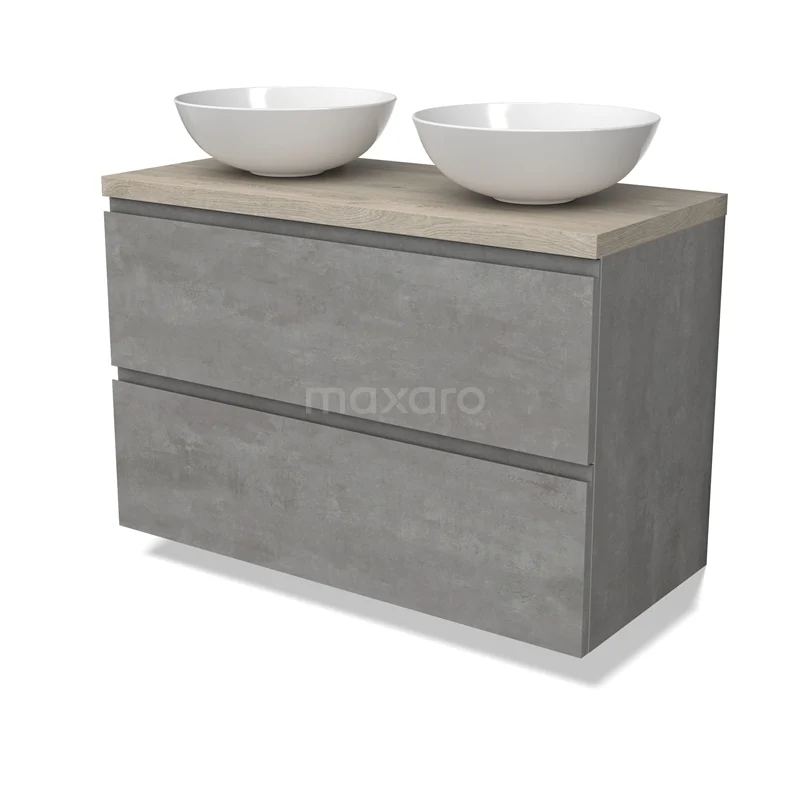 Modulo Plato Vanity units for countertop basin | 100 cm Light grey concrete Handle-less front Light grey oak worktop 2 Stacked drawers