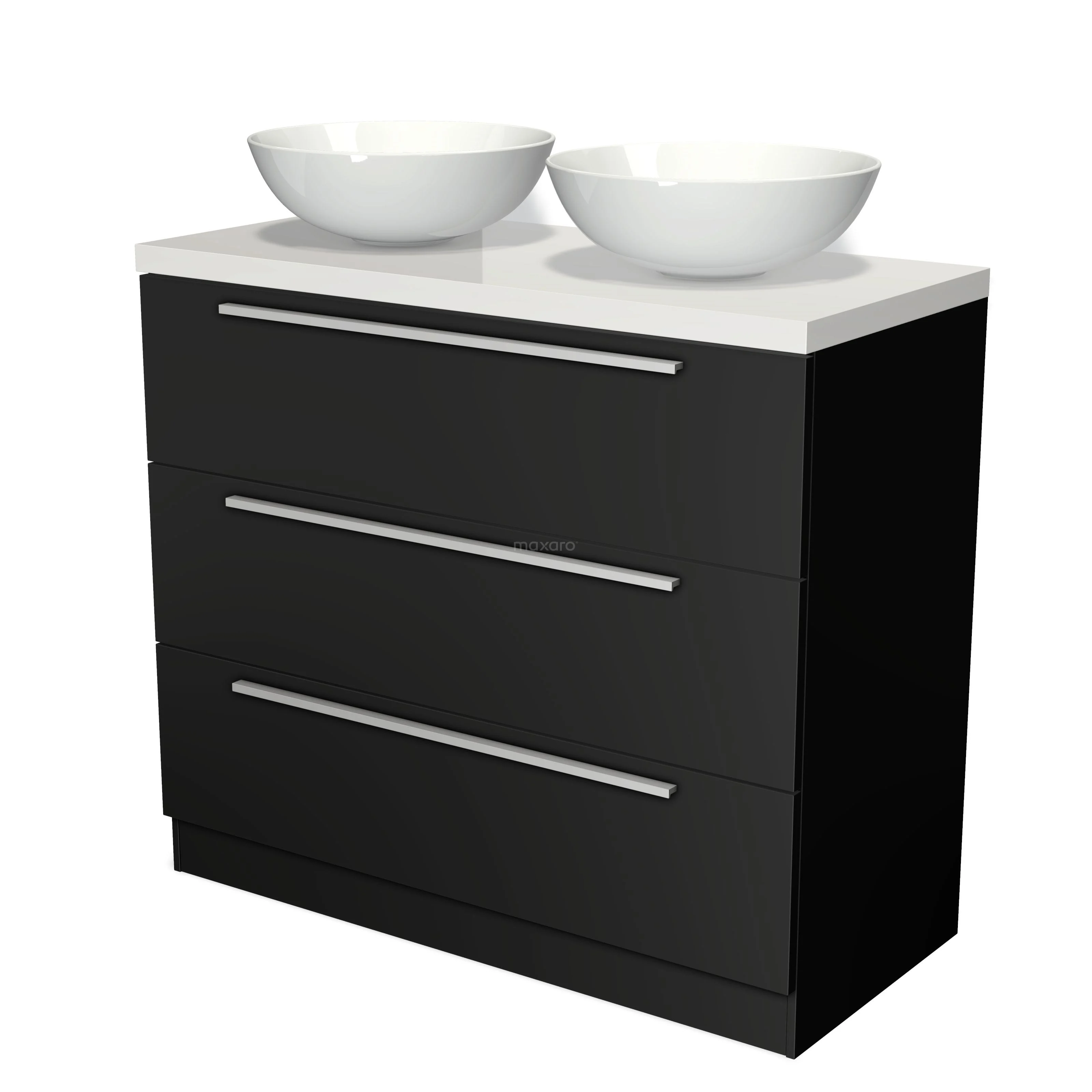 Modulo Plato Vanity units for countertop basin | 100 cm Matte black Flat front High-gloss white worktop 3 standing drawers