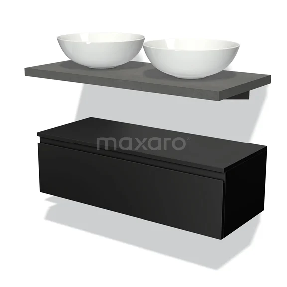 Modulo Plato Vanity units for countertop basin | 100 cm Matte black Handle-less front Dark grey concrete worktop Low floating