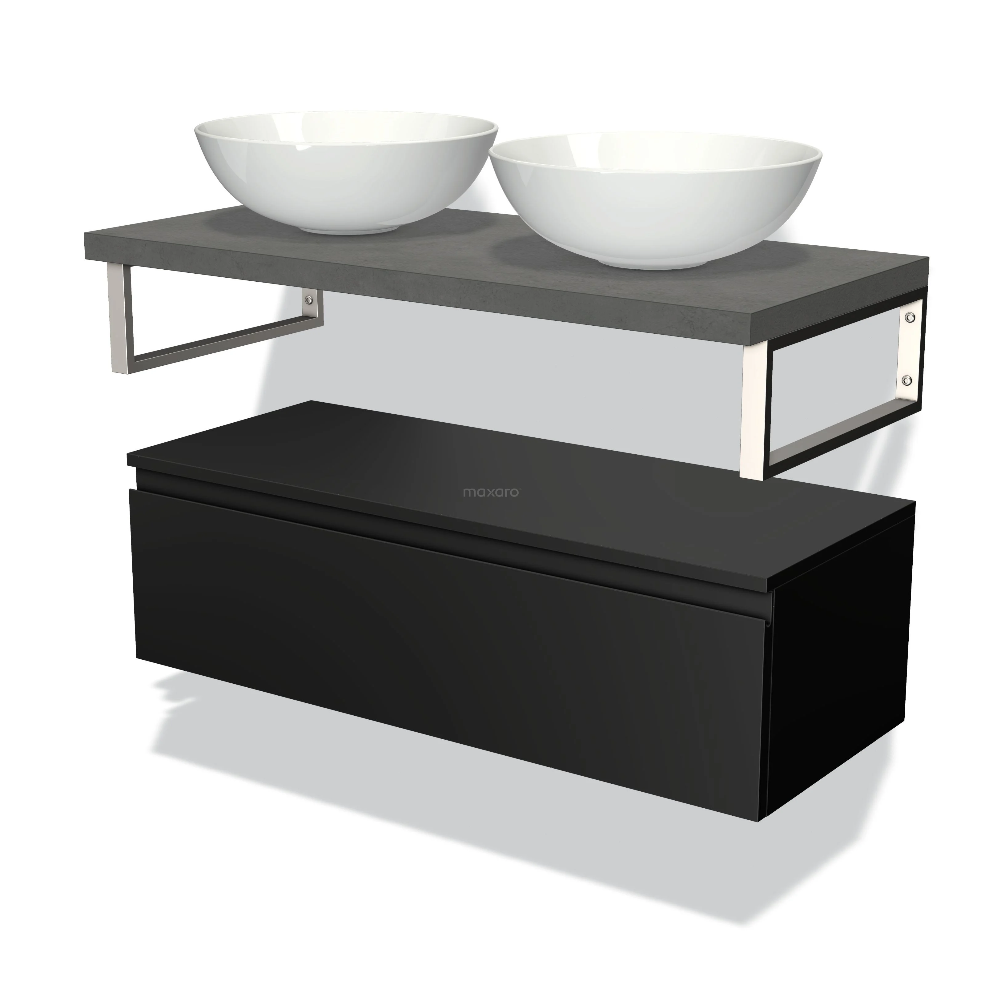 Modulo Plato Vanity units for countertop basin | 100 cm Matte black Handle-less front Dark grey concrete worktop Low floating