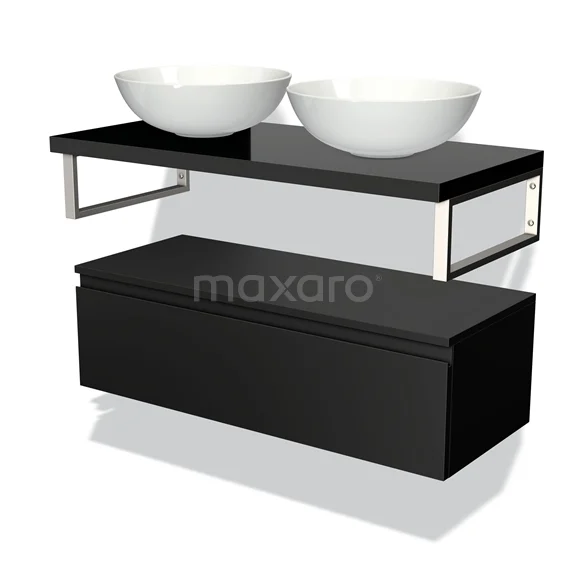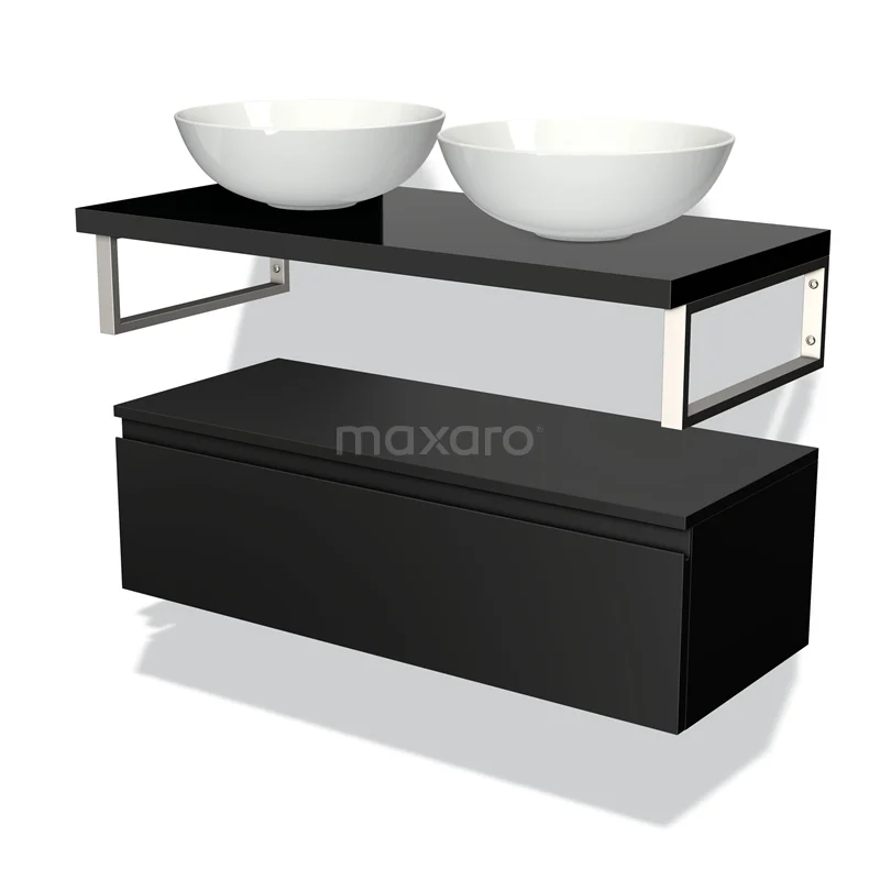 Modulo Plato Vanity units for countertop basin | 100 cm Matte black Handle-less front High-gloss black worktop Low floating