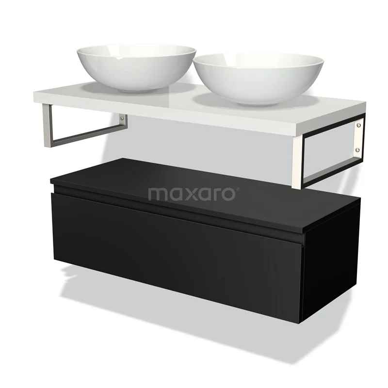 Modulo Plato Vanity units for countertop basin | 100 cm Matte black Handle-less front High-gloss white worktop Low floating
