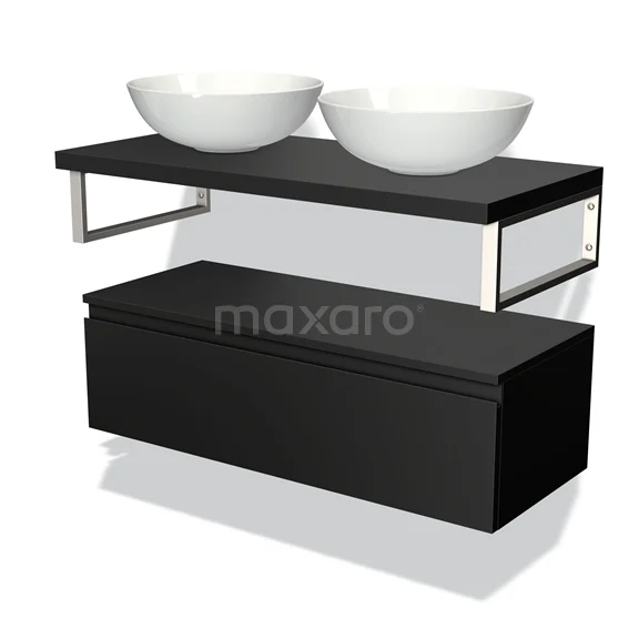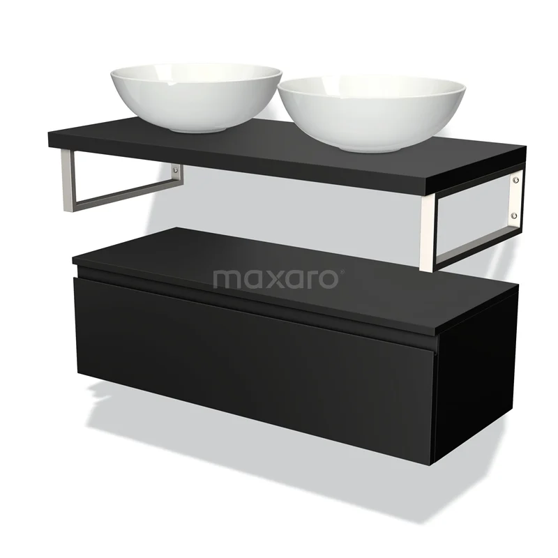Modulo Plato Vanity units for countertop basin | 100 cm Matte black Handle-less front Matte black worktop Low floating