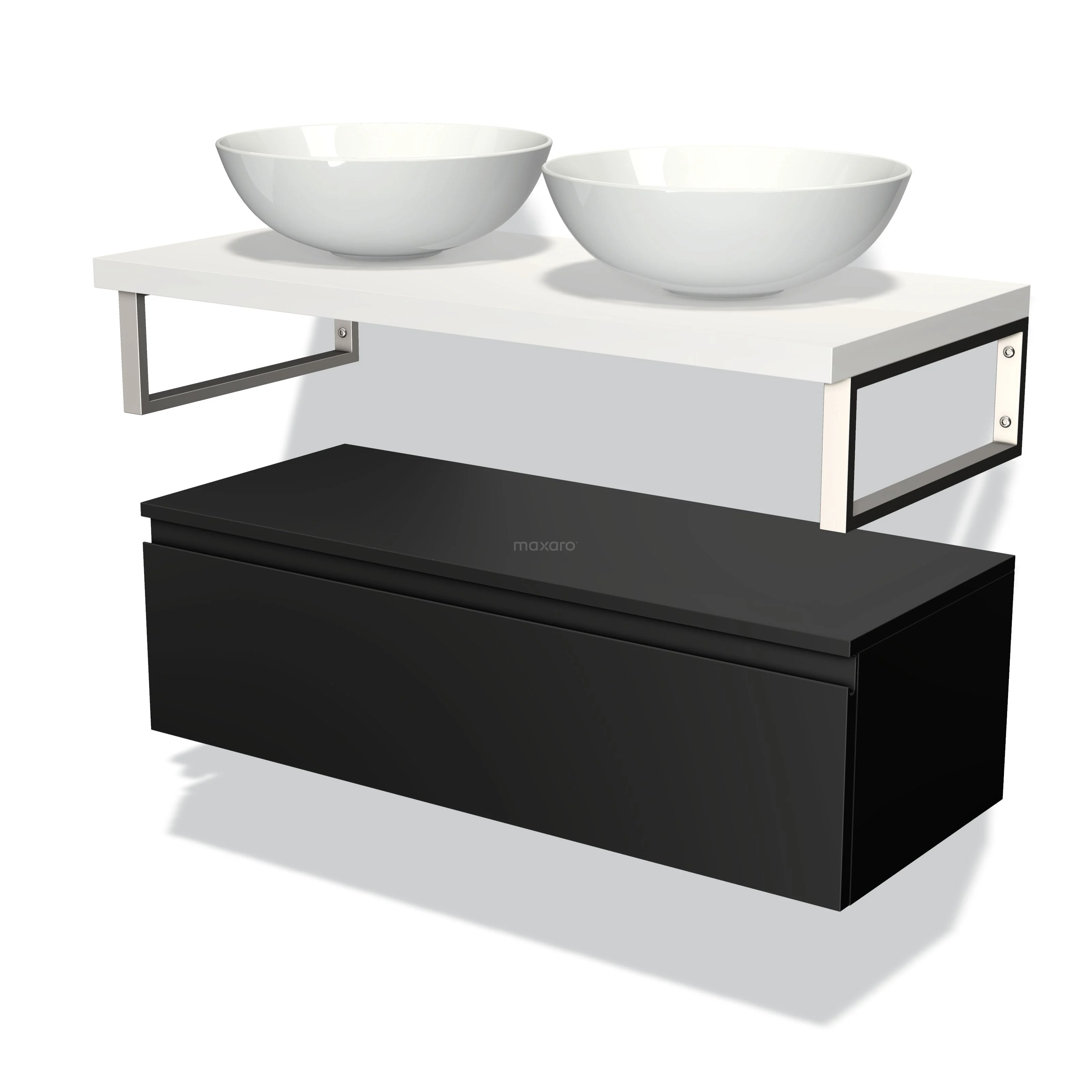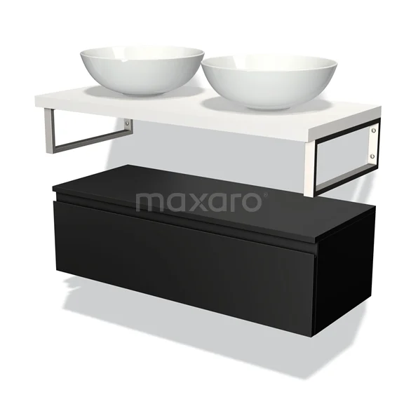 Modulo Plato Vanity units for countertop basin | 100 cm Matte black Handle-less front Matte white worktop Low floating