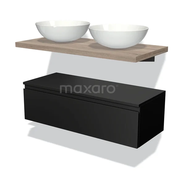 Modulo Plato Vanity units for countertop basin | 100 cm Matte black Handle-less front Oak worktop Low floating