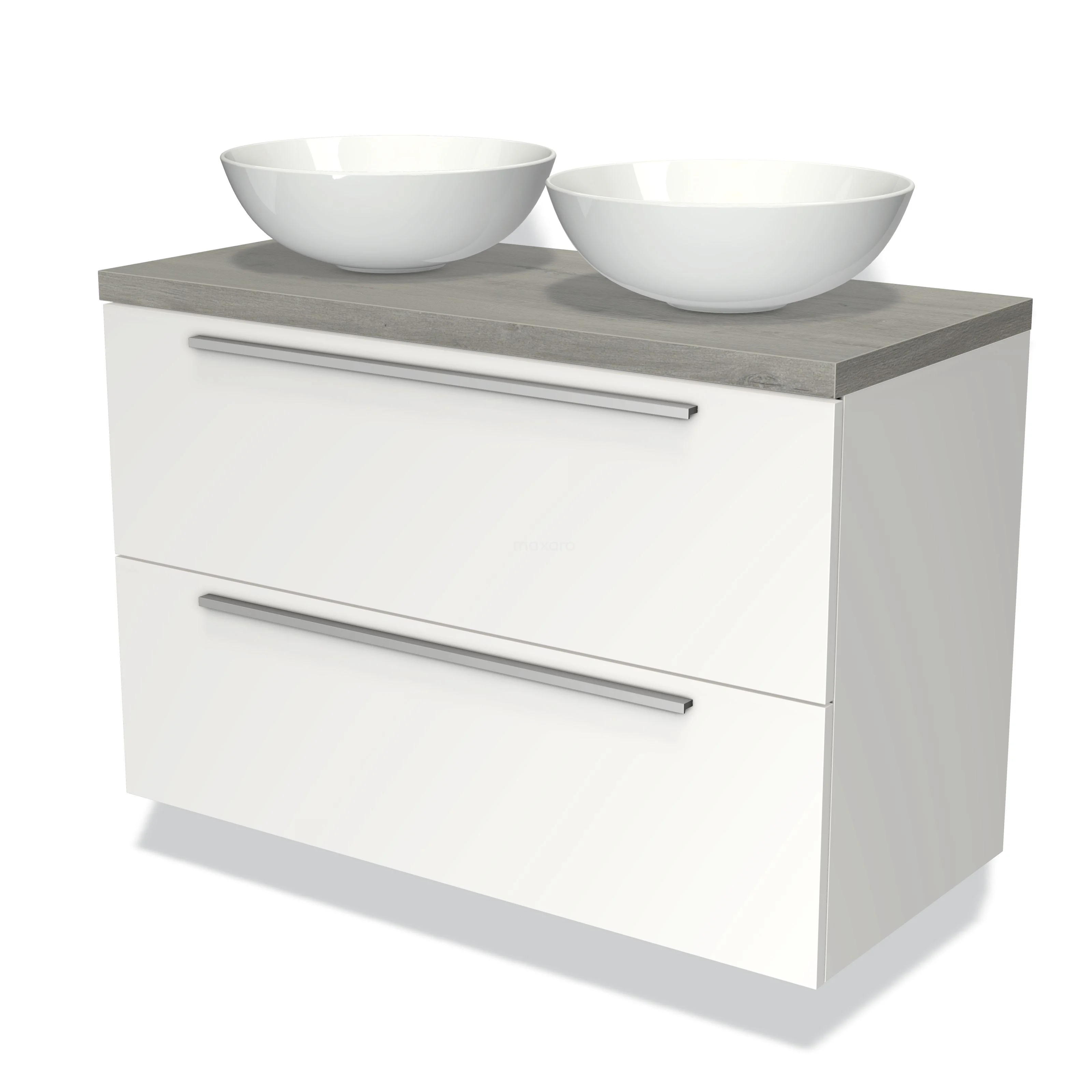 Bathroom unit complete A countertop wash basin and basin tap will complete your bathroom unit. Maxaro has countertop wash basins in all kinds of materials, shapes and sizes. With the taps, you also have a lot of choice. The range includes colours such as chrome, stainless steel, gold, copper, black metal and black chrome. For even more storage space, choose a matching bathroom cabinet.