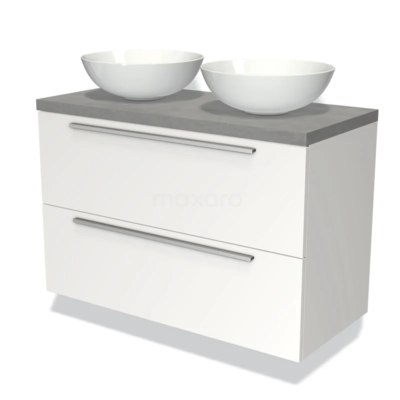 Modulo Plato Vanity units for countertop basin | 100 cm Matte white Flat front Light grey concrete worktop 2 Stacked drawers
