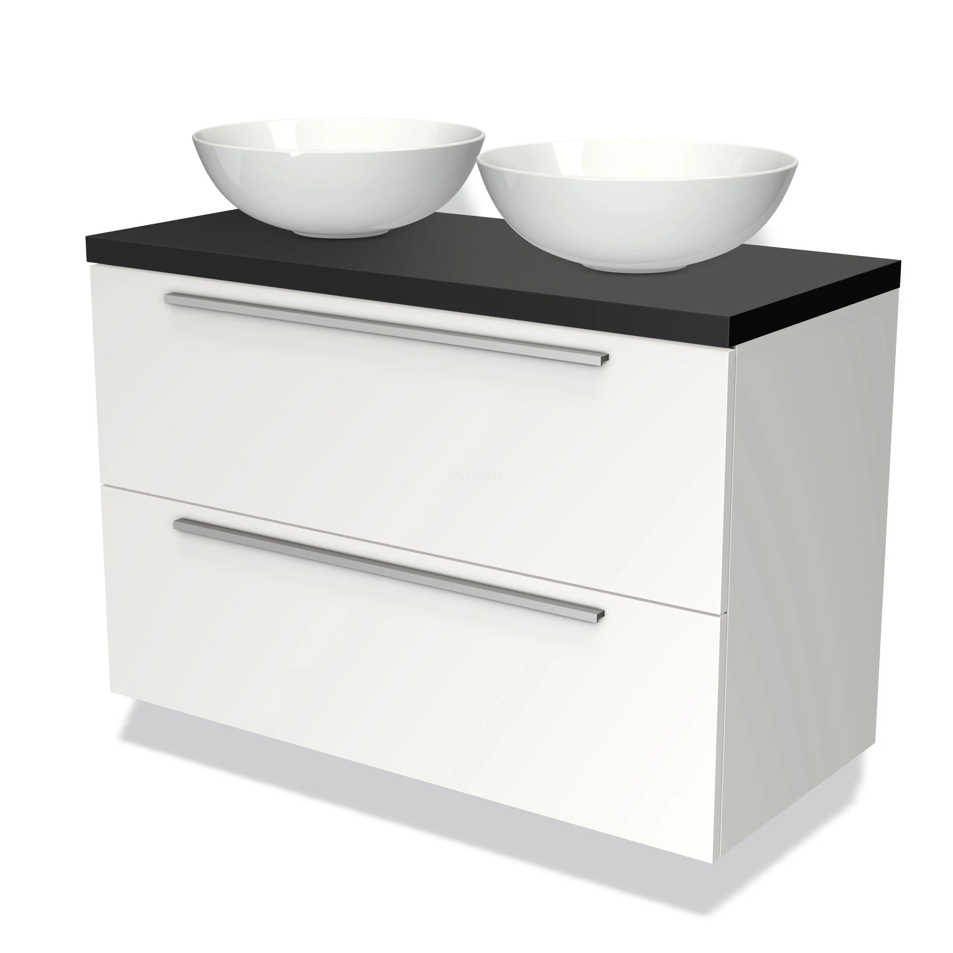 Modulo Plato Vanity units for countertop basin | 100 cm Matte white Flat front Matte black worktop 2 Stacked drawers