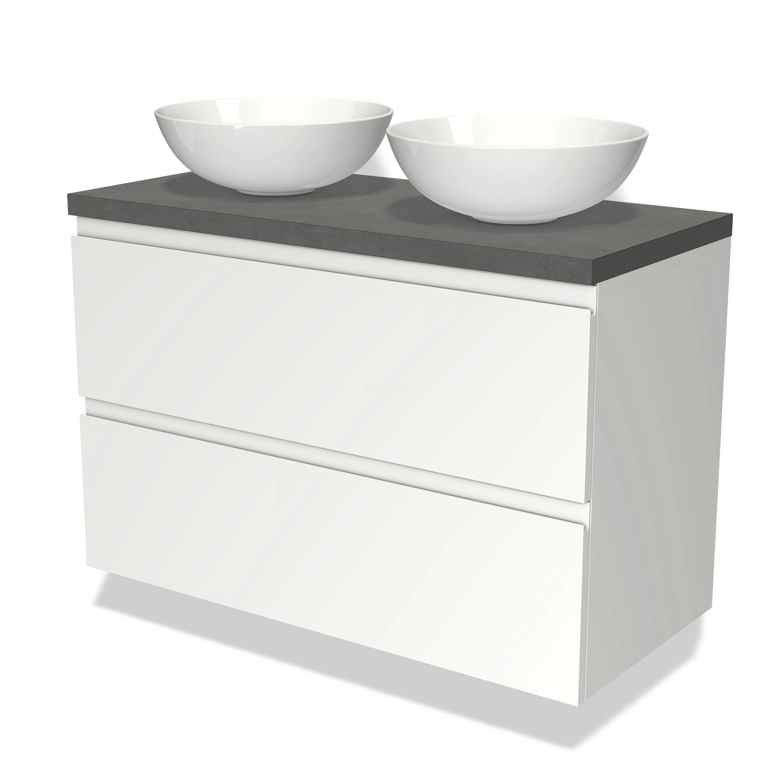 Modulo Plato Vanity units for countertop basin | 100 cm Matte white Handle-less front Dark grey concrete worktop 2 Stacked drawers