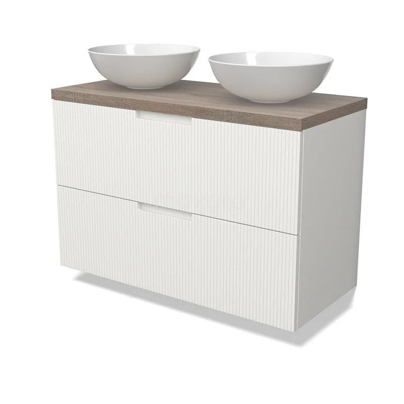 Modulo Plato Vanity units for countertop basin | 100 cm Matte white Line front Oak worktop 2 Stacked drawers