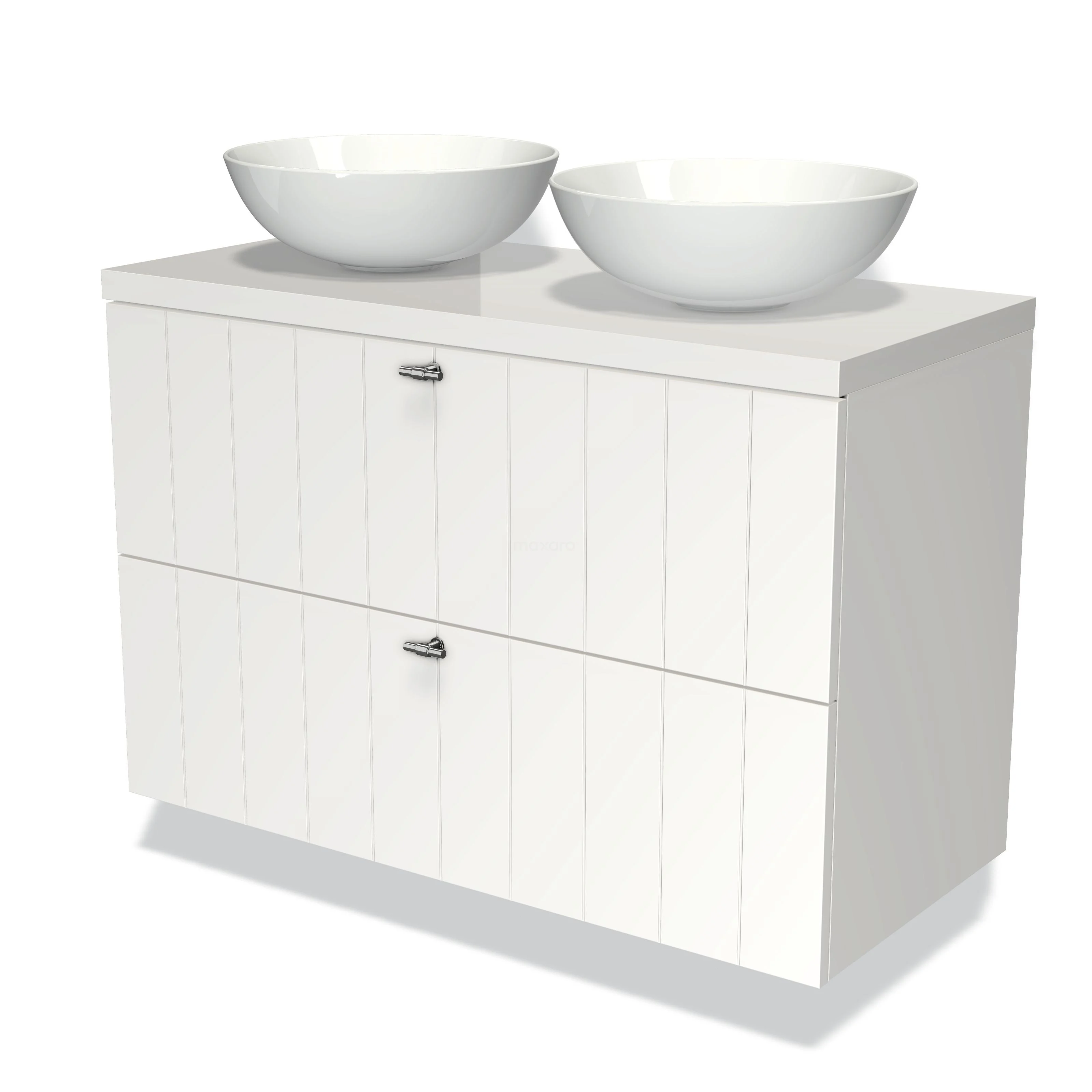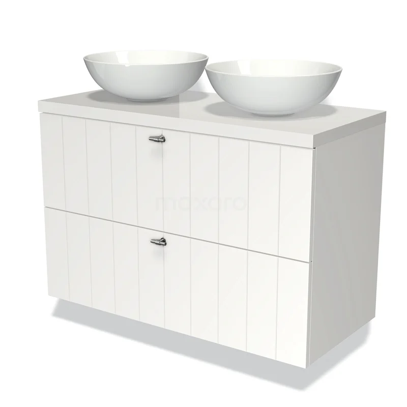 Modulo Plato Vanity units for countertop basin | 100 cm Matte white Slat front High-gloss white worktop 2 Stacked drawers
