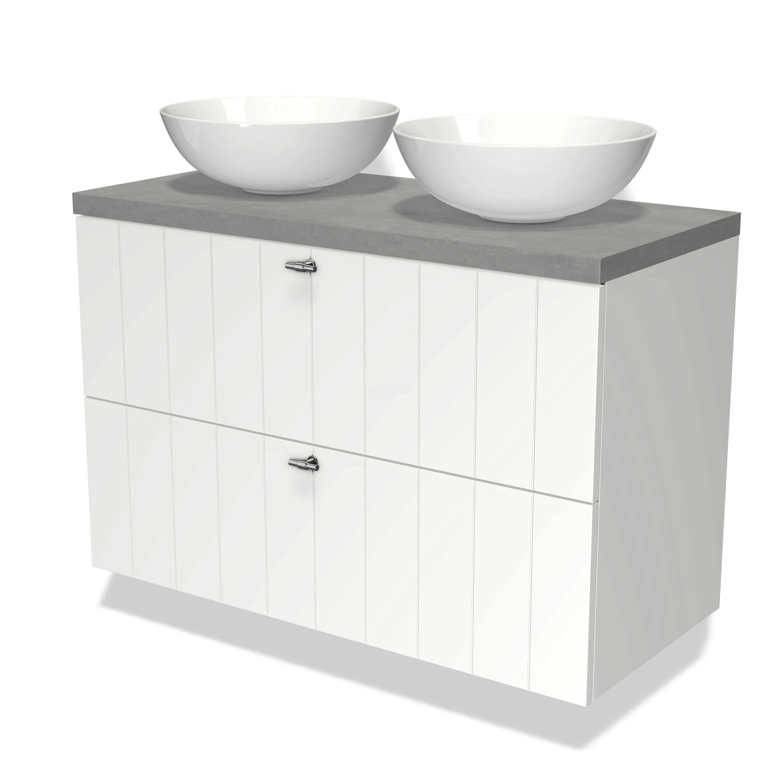 Modulo Plato Vanity units for countertop basin | 100 cm Matte white Slat front Light grey concrete worktop 2 Stacked drawers