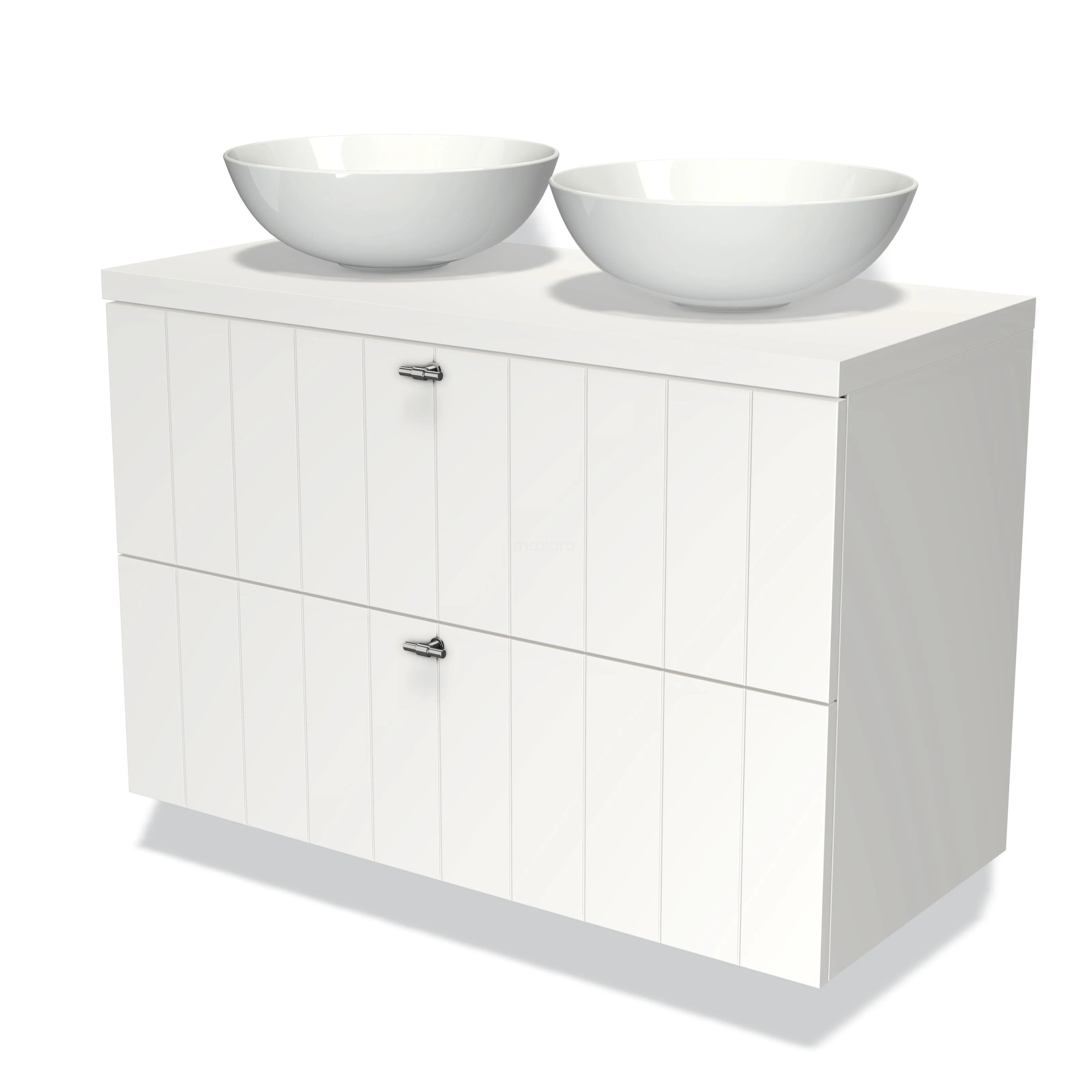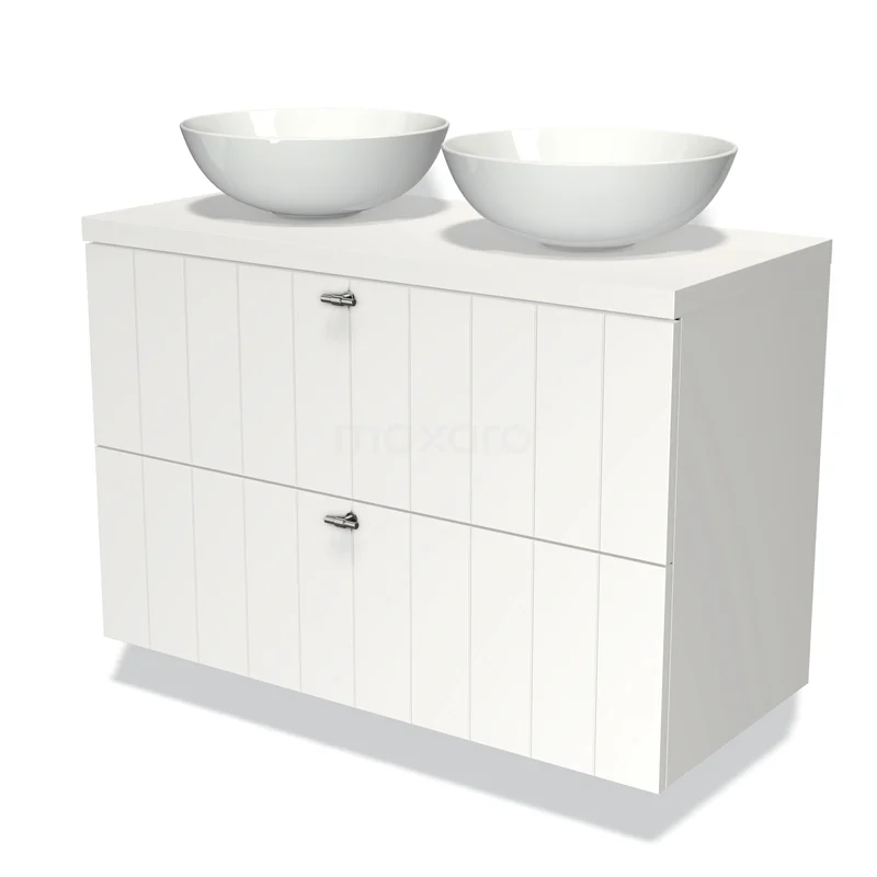 Modulo Plato Vanity units for countertop basin | 100 cm Matte white Slat front Matte white worktop 2 Stacked drawers