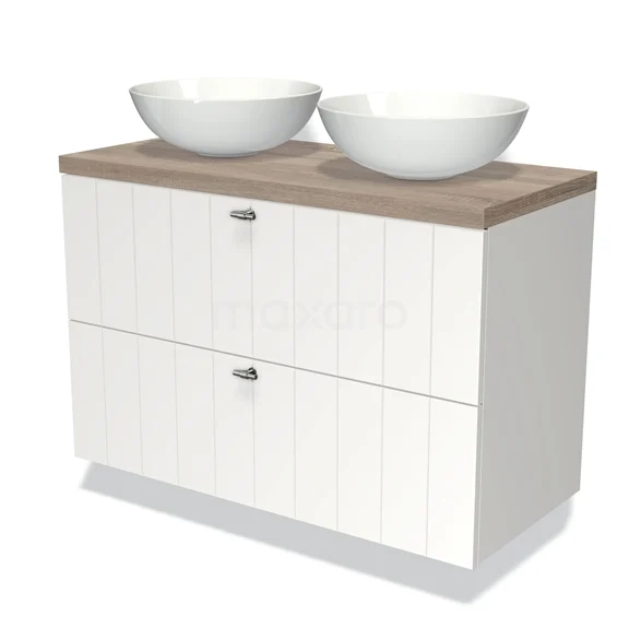 Modulo Plato Vanity units for countertop basin | 100 cm Matte white Slat front Oak worktop 2 Stacked drawers