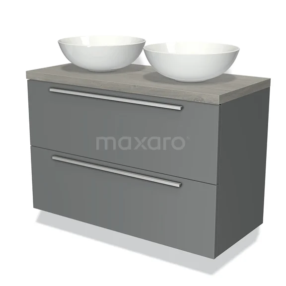 Modulo Plato Vanity units for countertop basin | 100 cm Mid grey Flat front Grey oak worktop 2 Stacked drawers