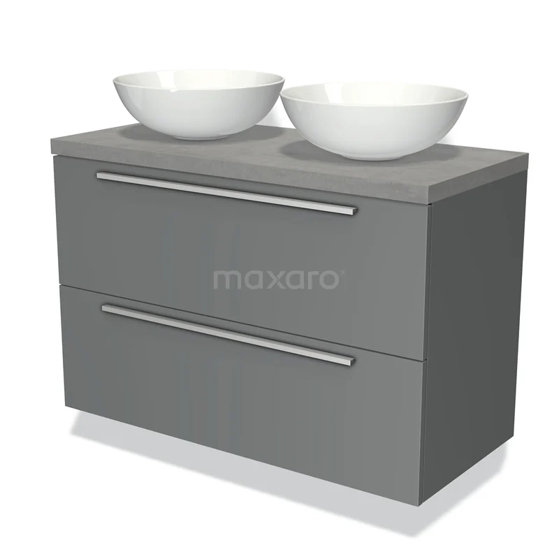 Modulo Plato Vanity units for countertop basin | 100 cm Mid grey Flat front Light grey concrete worktop 2 Stacked drawers
