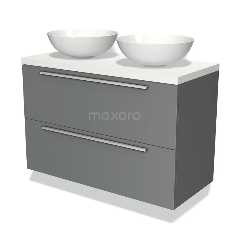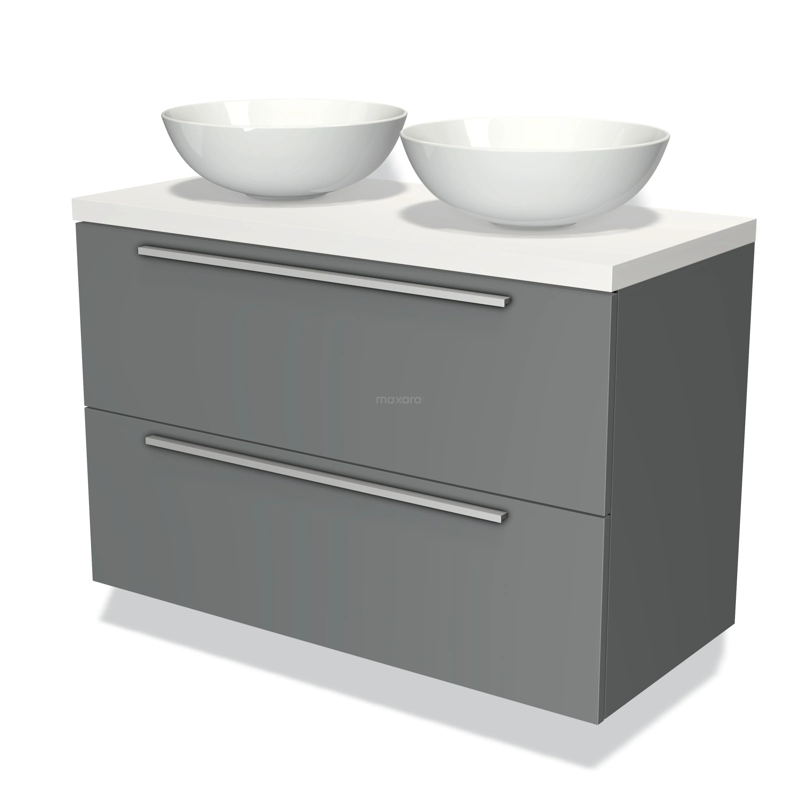 Modulo Plato Vanity units for countertop basin | 100 cm Mid grey Flat front Matte white worktop 2 Stacked drawers