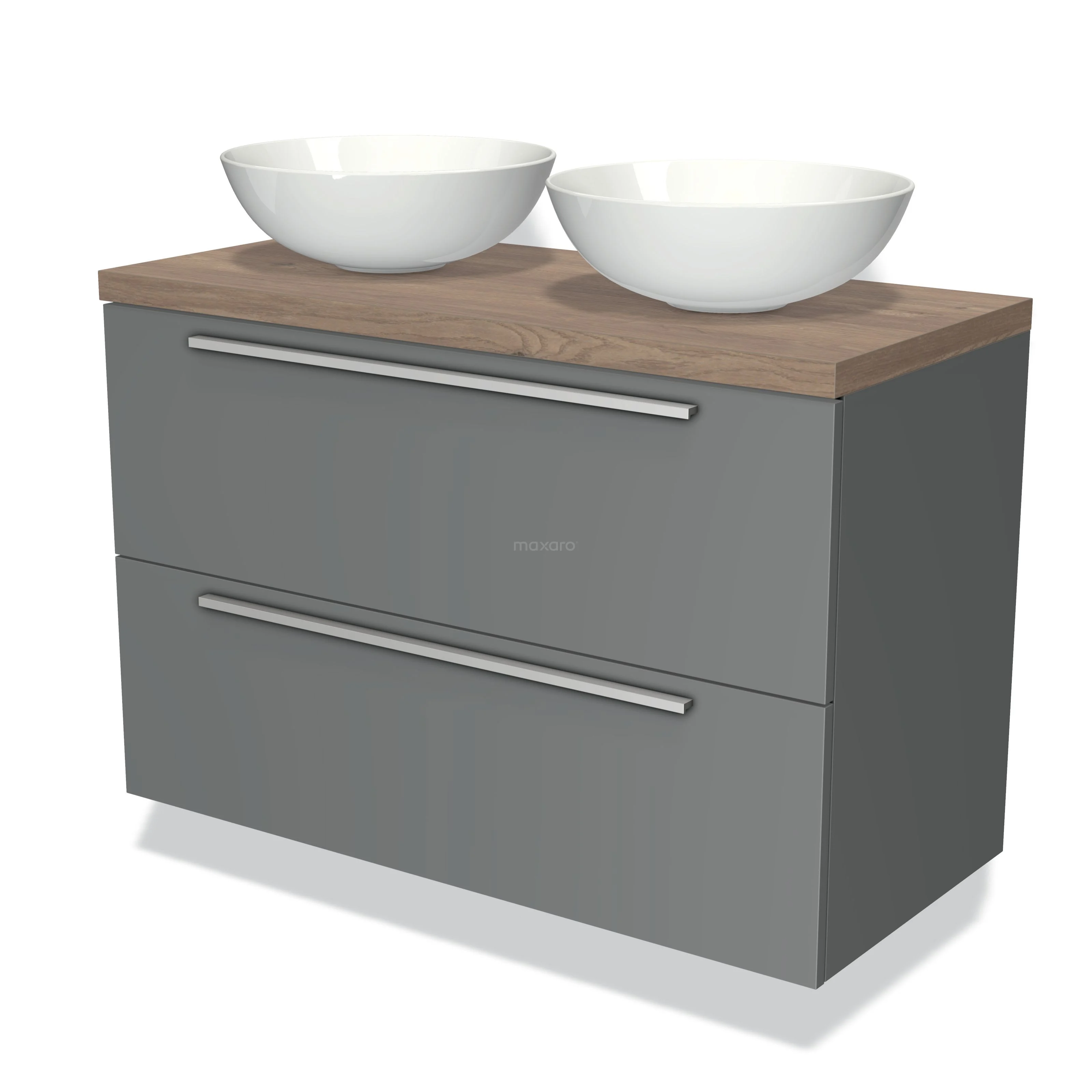 Modulo Plato Vanity units for countertop basin | 100 cm Mid grey Flat front Mid brown oak worktop 2 Stacked drawers
