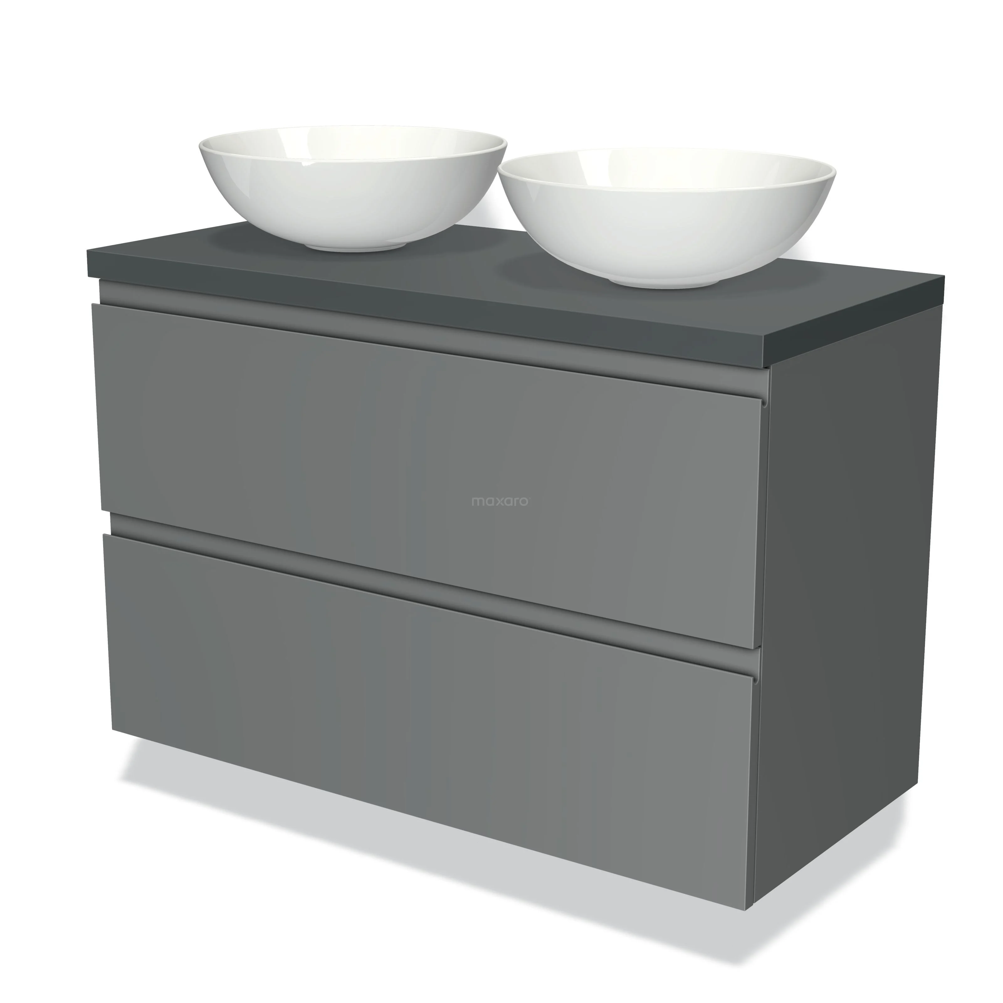 Modulo Plato Vanity units for countertop basin | 100 cm Mid grey Handle-less front Dark grey worktop 2 Stacked drawers