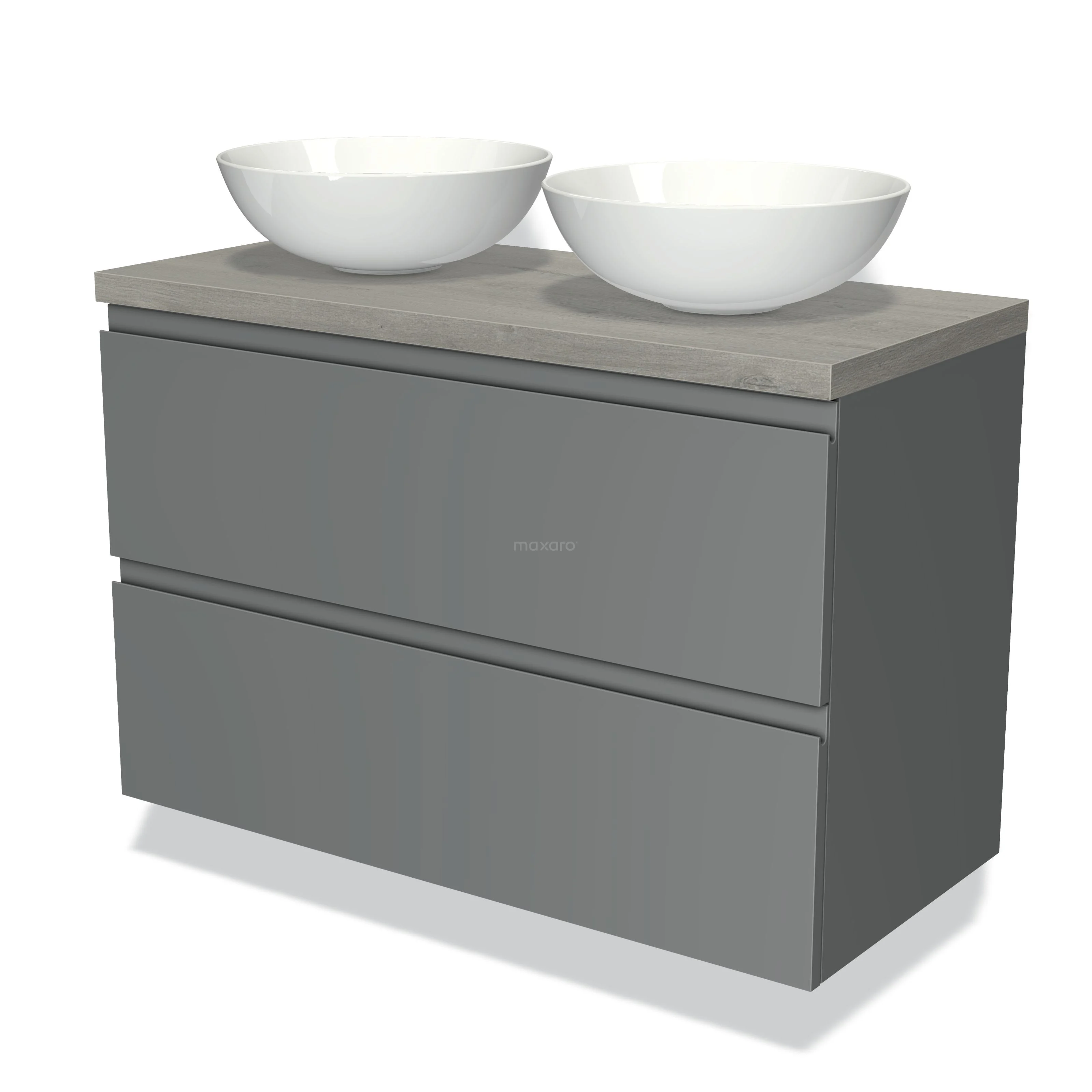 Modulo Plato Vanity units for countertop basin | 100 cm Mid grey Handle-less front Grey oak worktop 2 Stacked drawers
