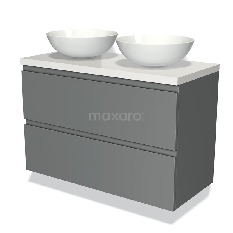 Modulo Plato Vanity units for countertop basin | 100 cm Mid grey Handle-less front High-gloss white worktop 2 Stacked drawers