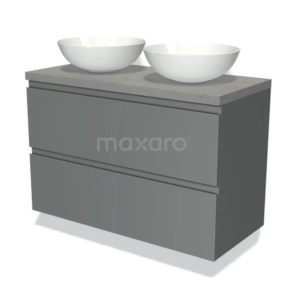 Modulo Plato Vanity units for countertop basin | 100 cm Mid grey Handle-less front Light grey concrete worktop 2 Stacked drawers