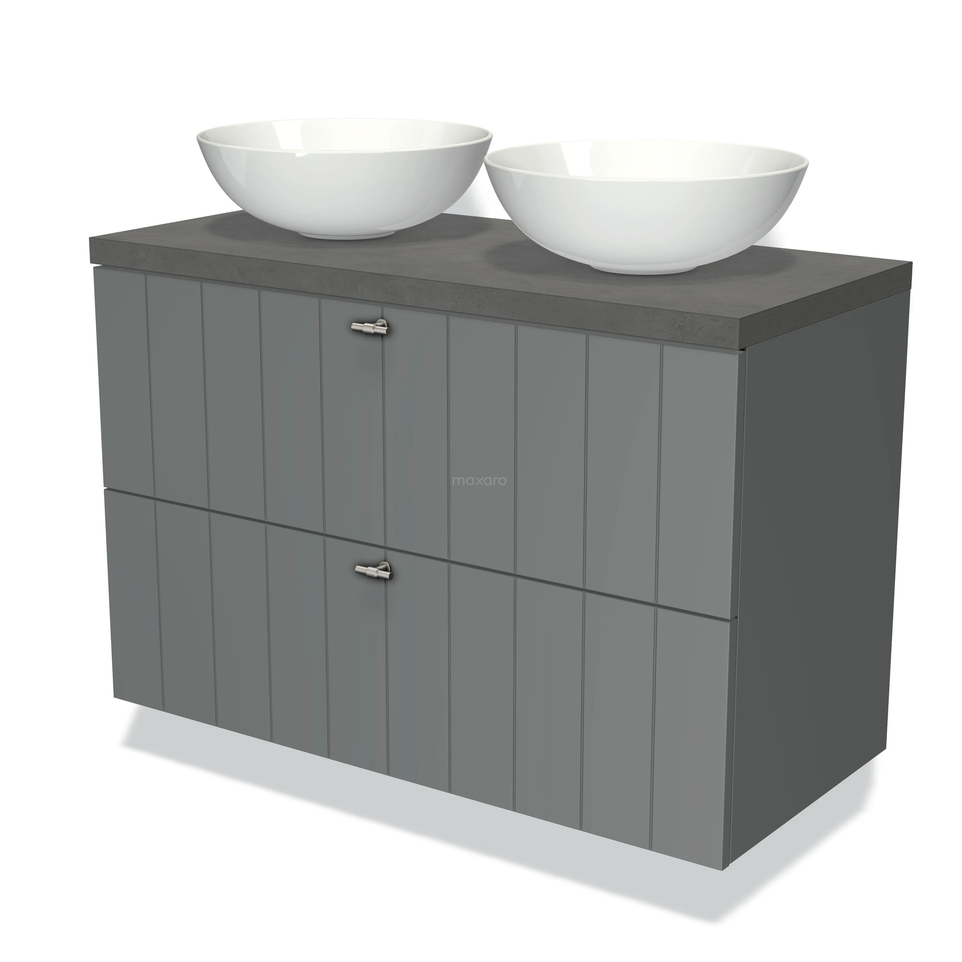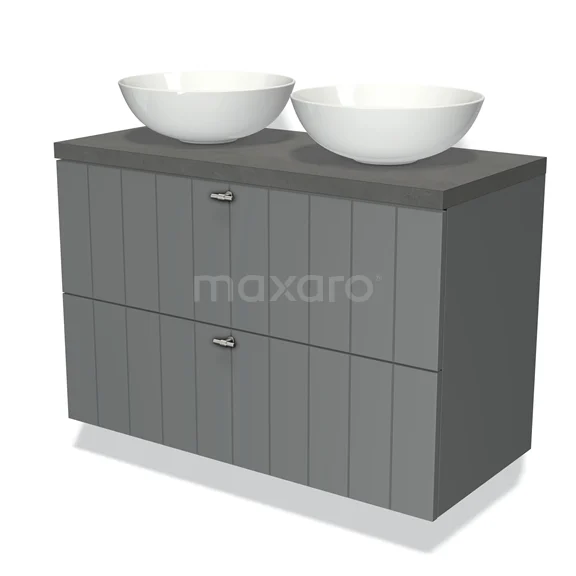 Modulo Plato Vanity units for countertop basin | 100 cm Mid grey Slat front Dark grey concrete worktop 2 Stacked drawers