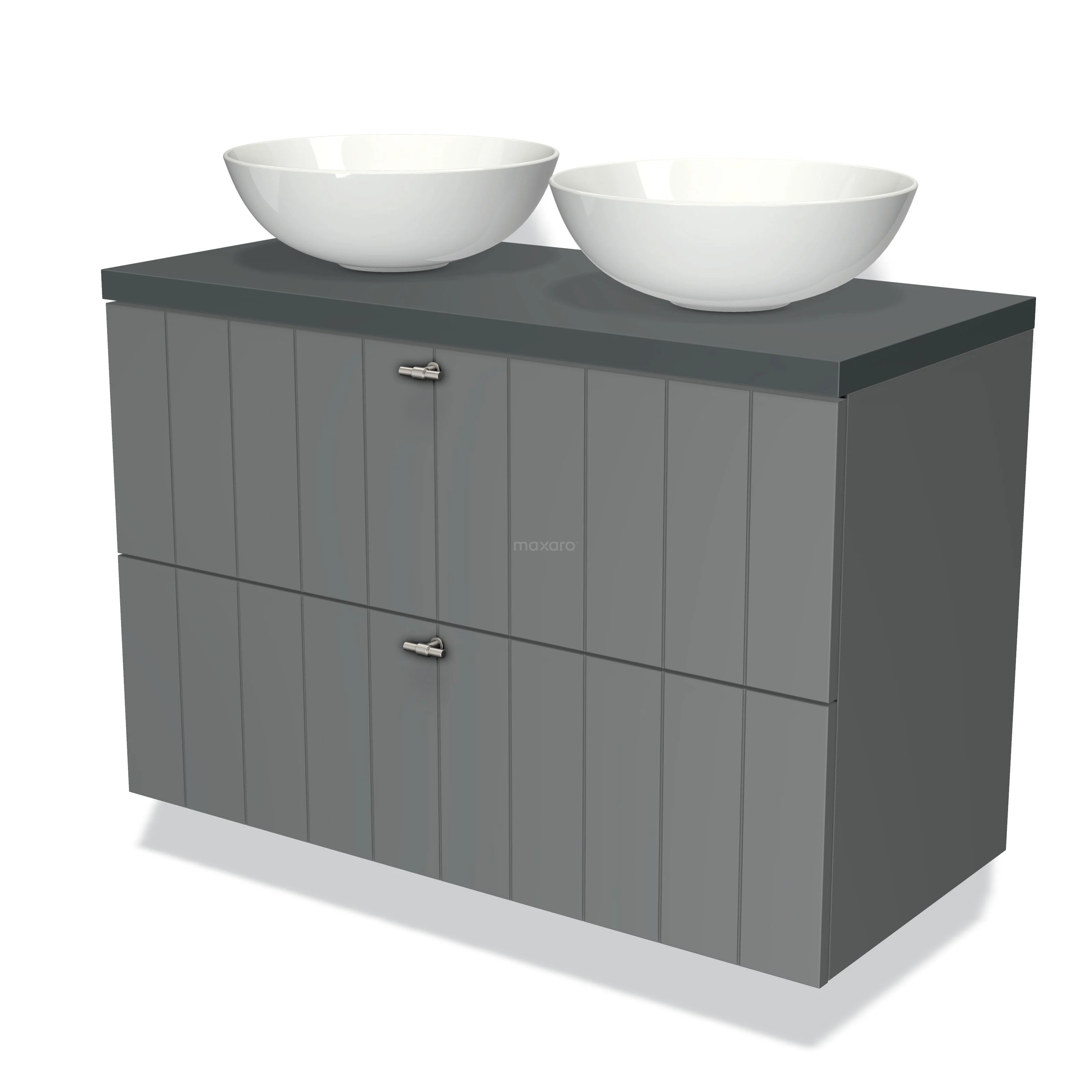 Modulo Plato Vanity units for countertop basin | 100 cm Mid grey Slat front Dark grey worktop 2 Stacked drawers