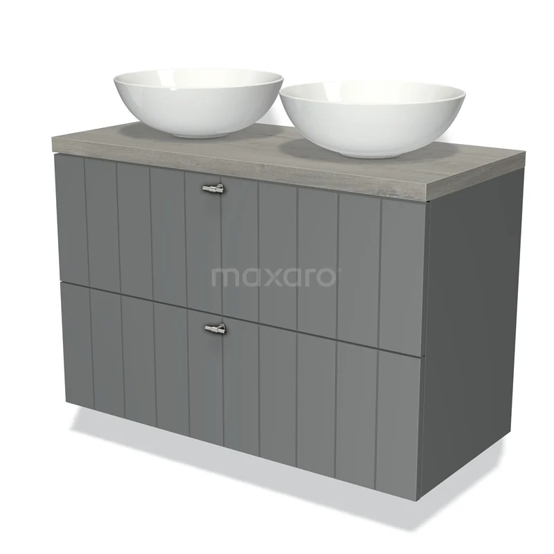Modulo Plato Vanity units for countertop basin | 100 cm Mid grey Slat front Grey oak worktop 2 Stacked drawers