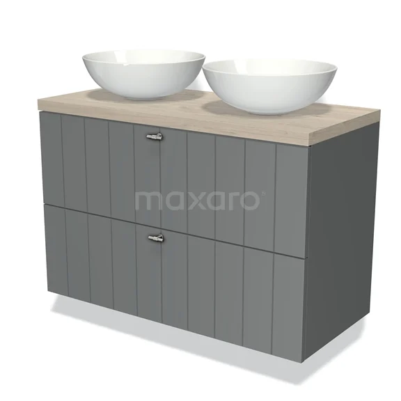 Modulo Plato Vanity units for countertop basin | 100 cm Mid grey Slat front Light grey oak worktop 2 Stacked drawers