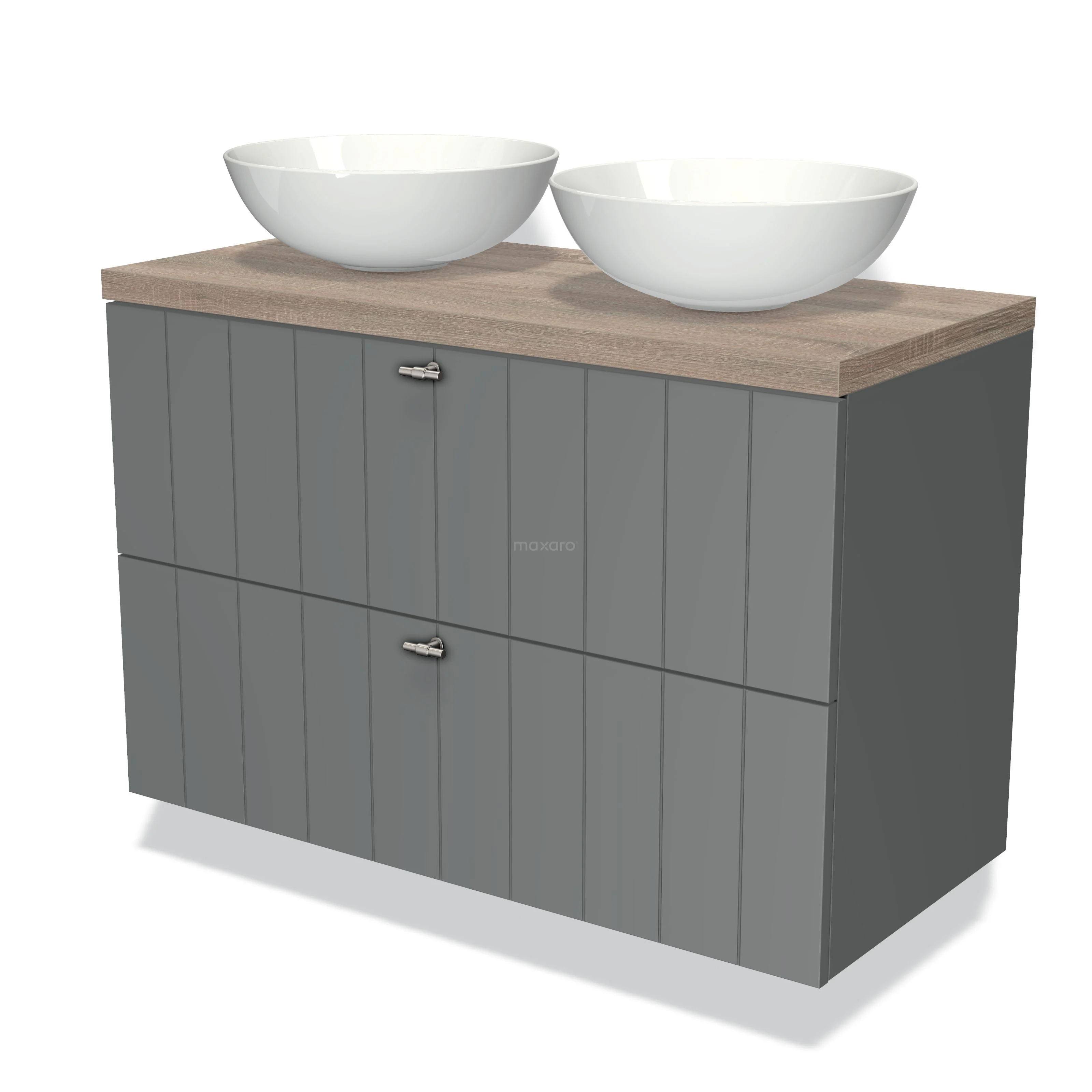 Modulo Plato Vanity units for countertop basin | 100 cm Mid grey Slat front Oak worktop 2 Stacked drawers