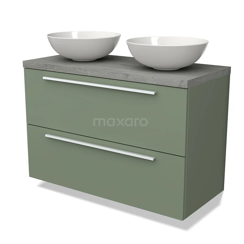 Modulo Plato Vanity units for countertop basin | 100 cm Sage green Flat front Grey oak worktop 2 Stacked drawers