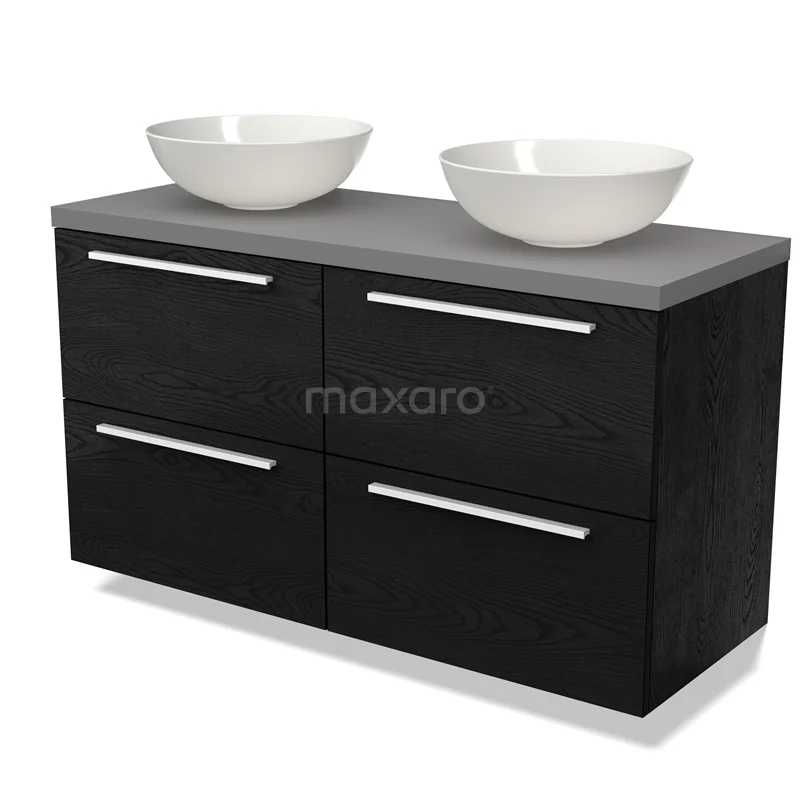 Modulo Plato Vanity units for countertop basin | 120 cm Black oak Flat front Mid grey worktop 4 drawers
