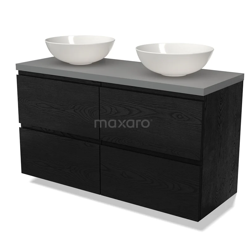 Modulo Plato Vanity units for countertop basin | 120 cm Black oak Handle-less front Mid grey worktop 4 drawers