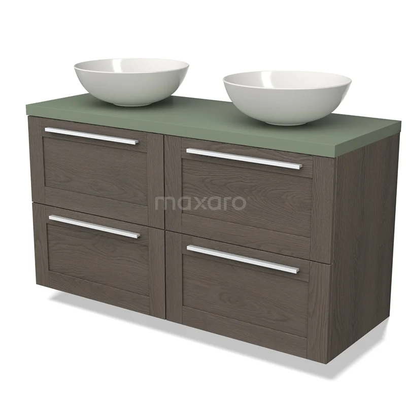 Modulo Plato Vanity units for countertop basin | 120 cm Dark brown oak Frame front Sage green worktop 4 drawers