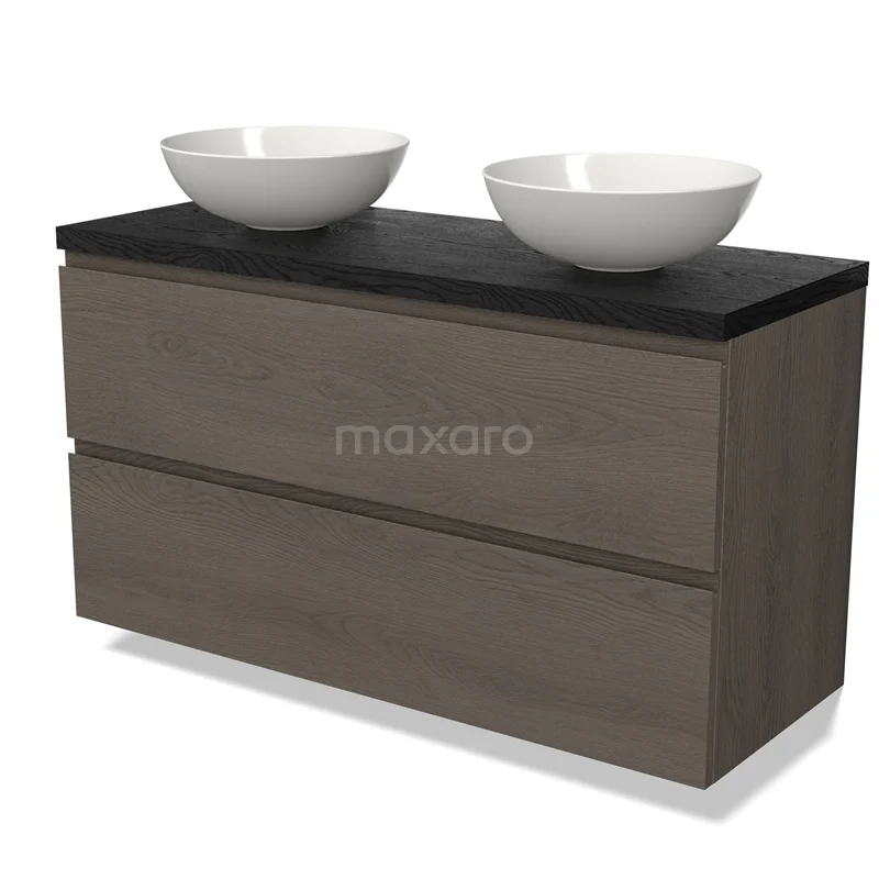 Modulo Plato Vanity units for countertop basin | 120 cm Dark brown oak Handle-less front Black oak worktop 2 Stacked drawers