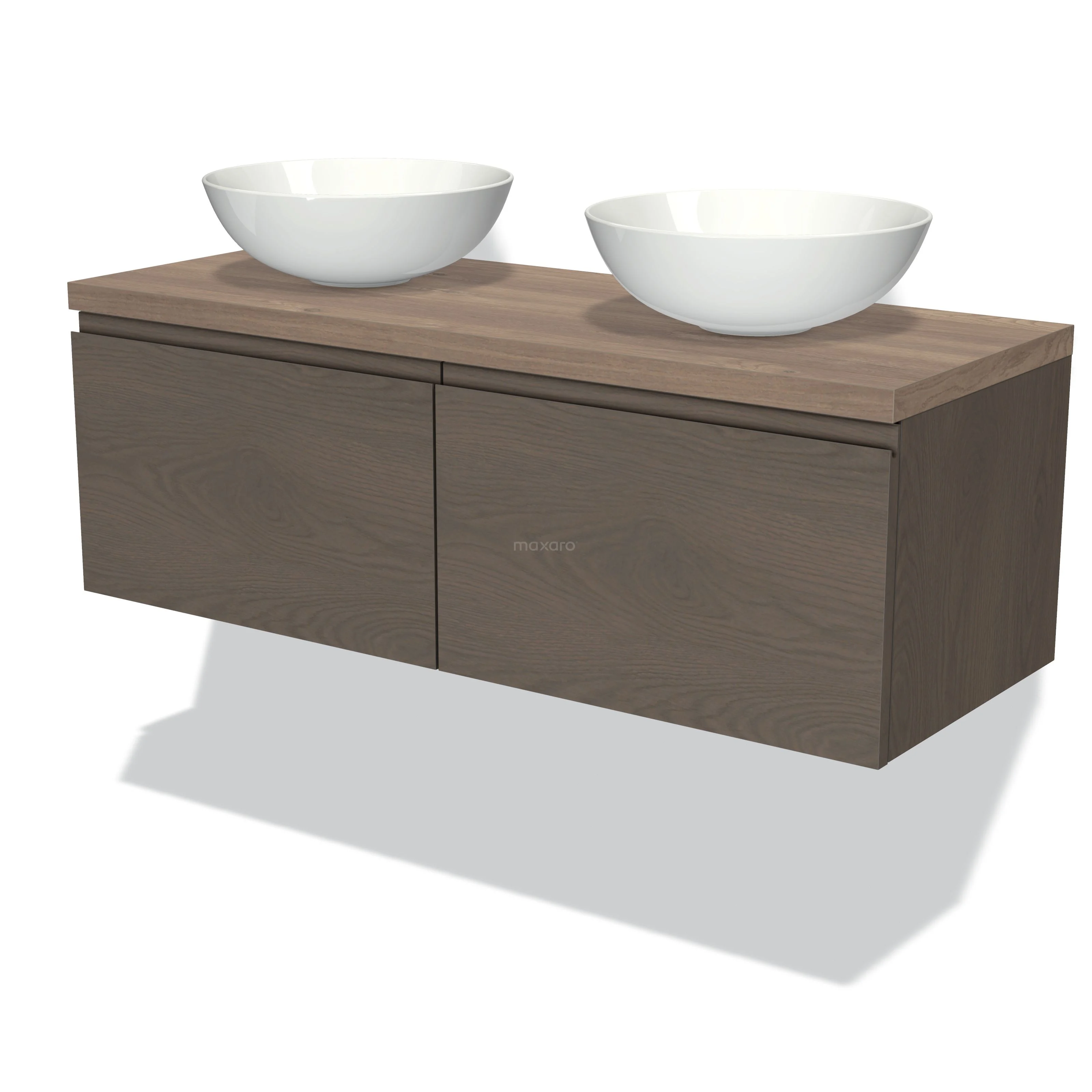 Modulo Plato Vanity units for countertop basin | 120 cm Dark brown oak Handle-less front Mid brown oak worktop 2 Side-by-side drawers