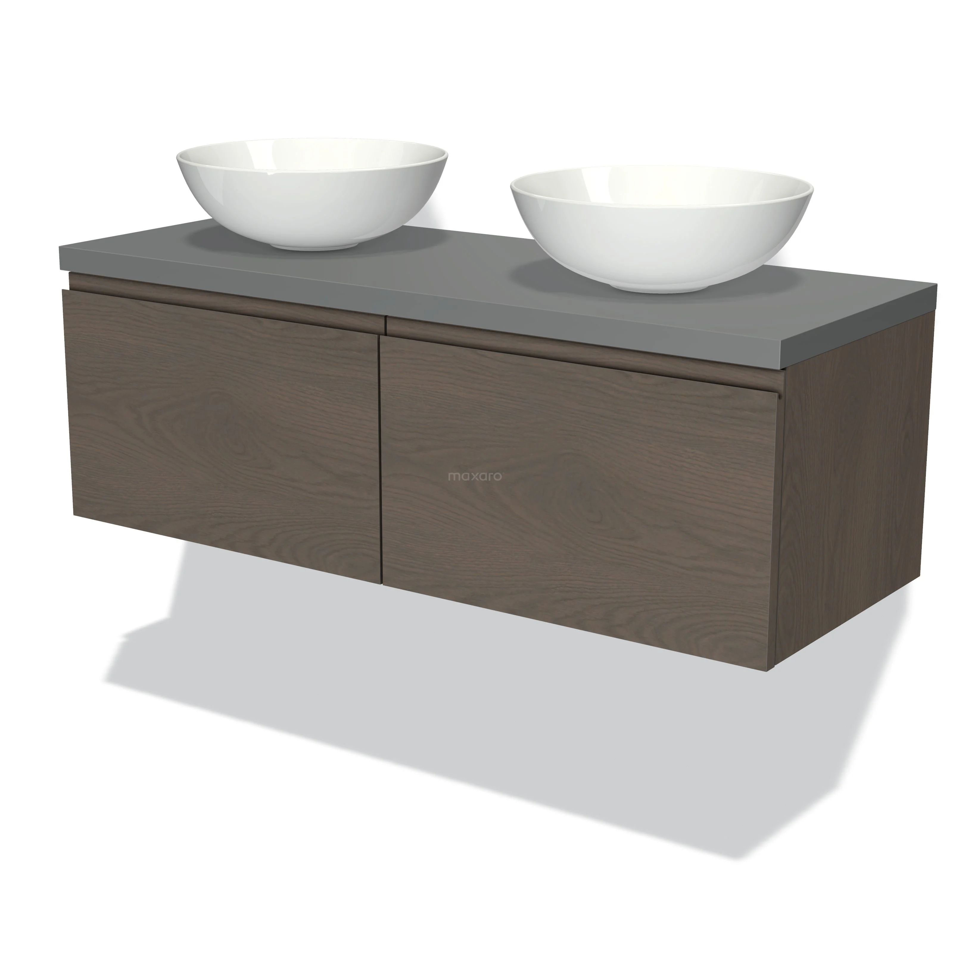 Modulo Plato Vanity units for countertop basin | 120 cm Dark brown oak Handle-less front Mid grey worktop 2 Side-by-side drawers