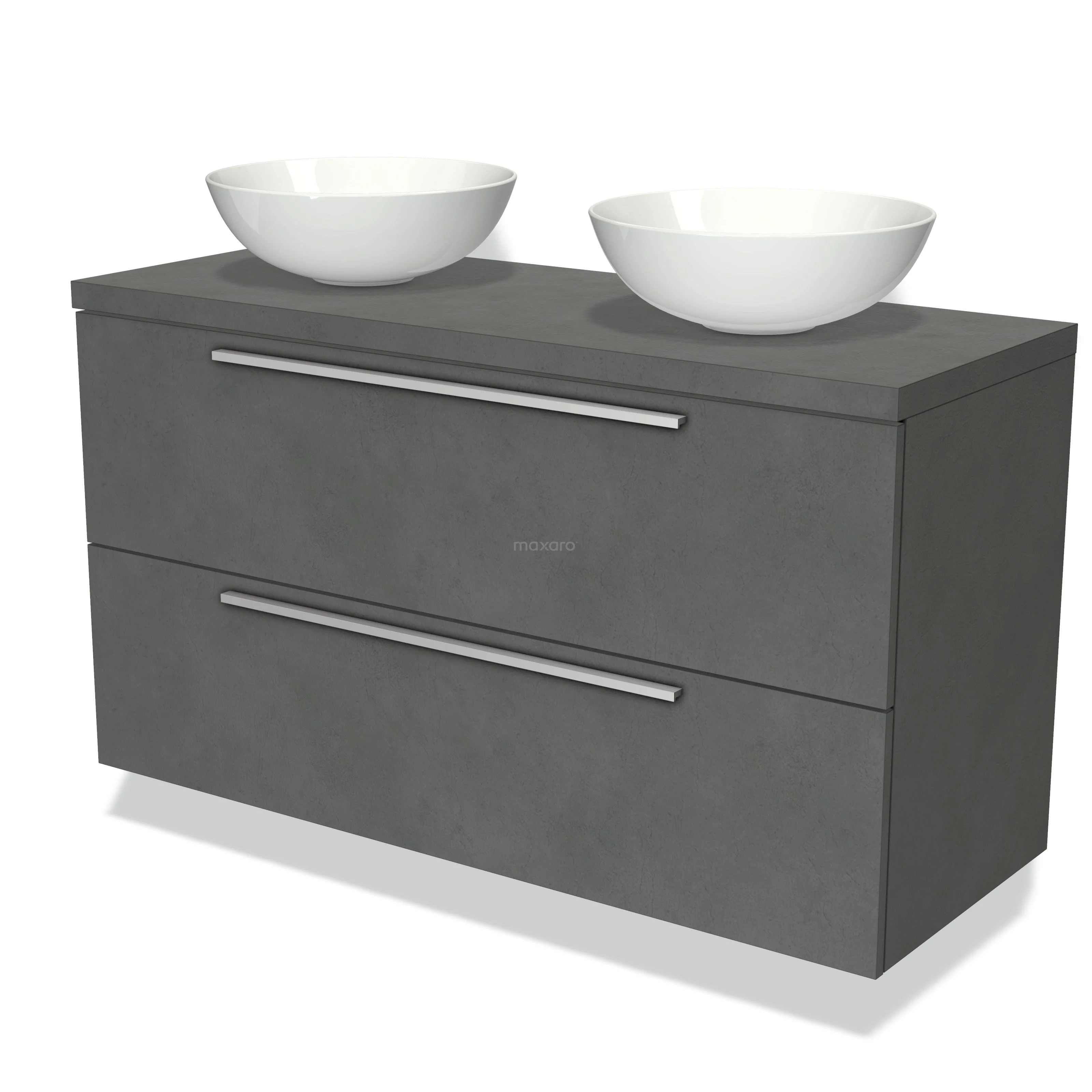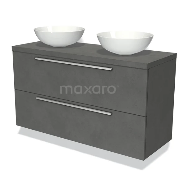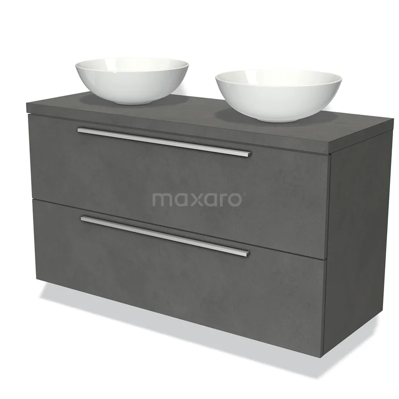 Modulo Plato Vanity units for countertop basin | 120 cm Dark grey concrete Flat front Dark grey concrete worktop 2 Stacked drawers