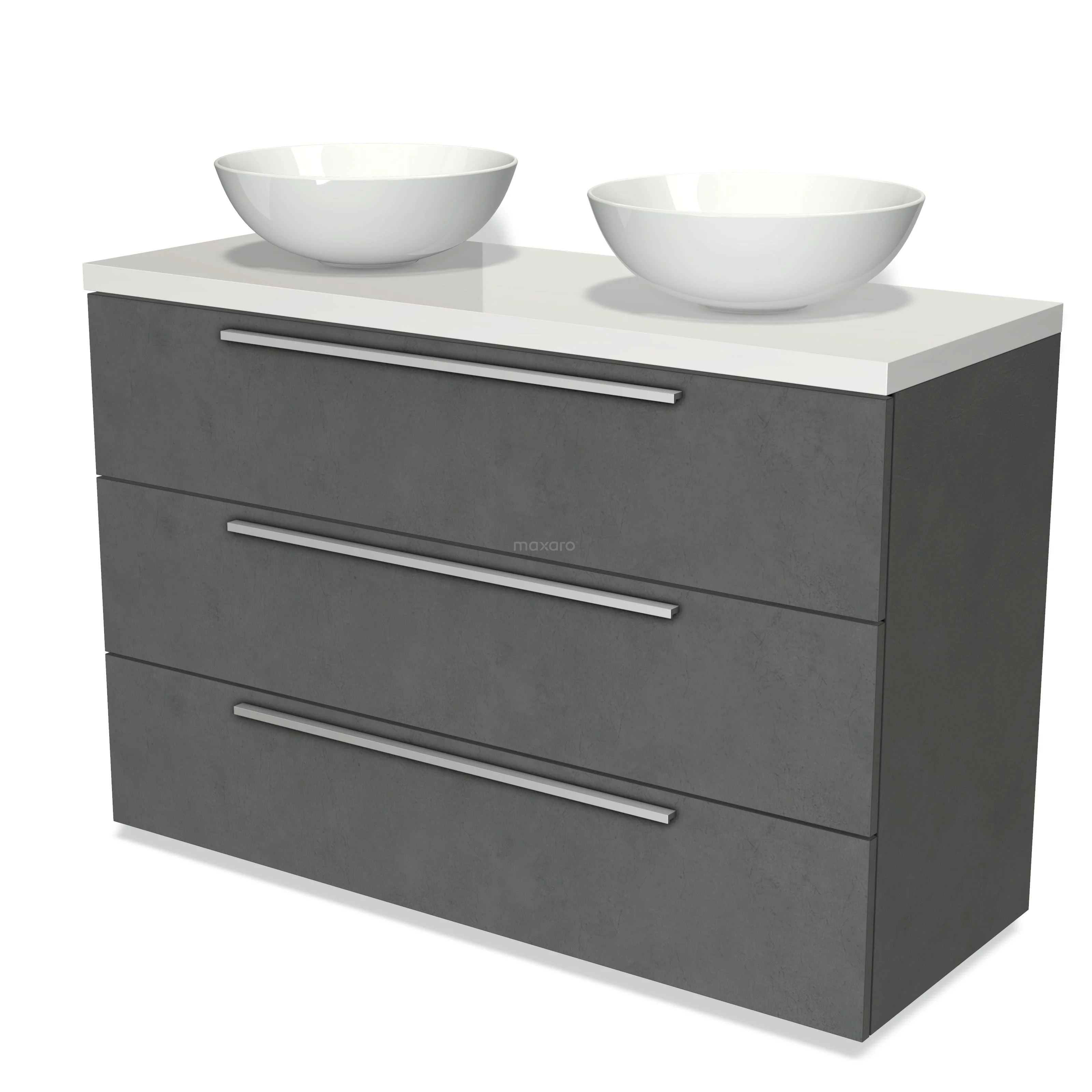 Modulo Plato Vanity units for countertop basin | 120 cm Dark grey concrete Flat front High-gloss white worktop 3 drawers